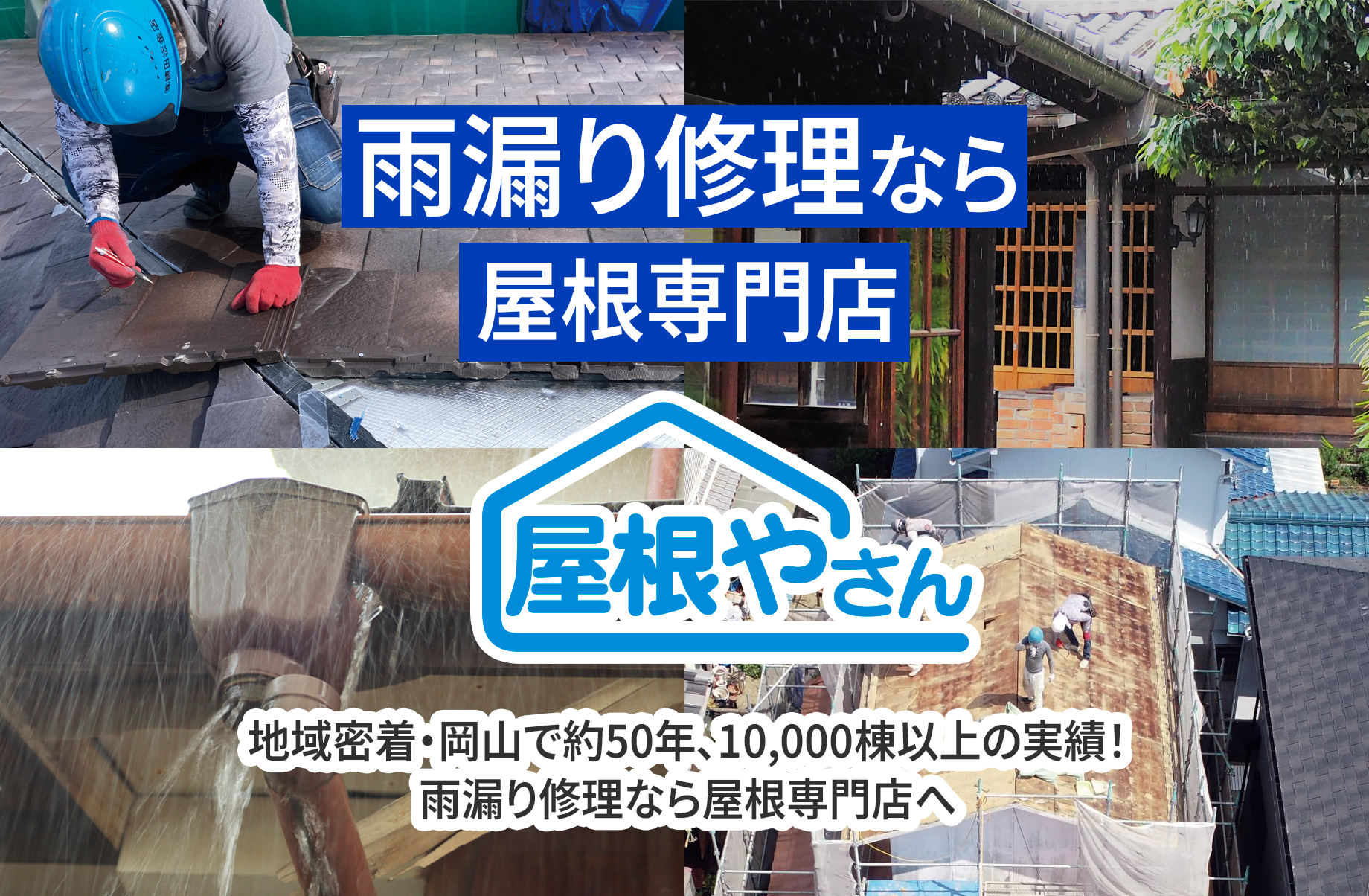 地域密着約50年。岡山市・倉敷市・総社市・赤磐市・玉野市・瀬戸内市エリアを中心に、多くのお客様の屋根を守ってきました。地域特有の強風や雨漏りの原因に熟知しているから、安心して任せられます。