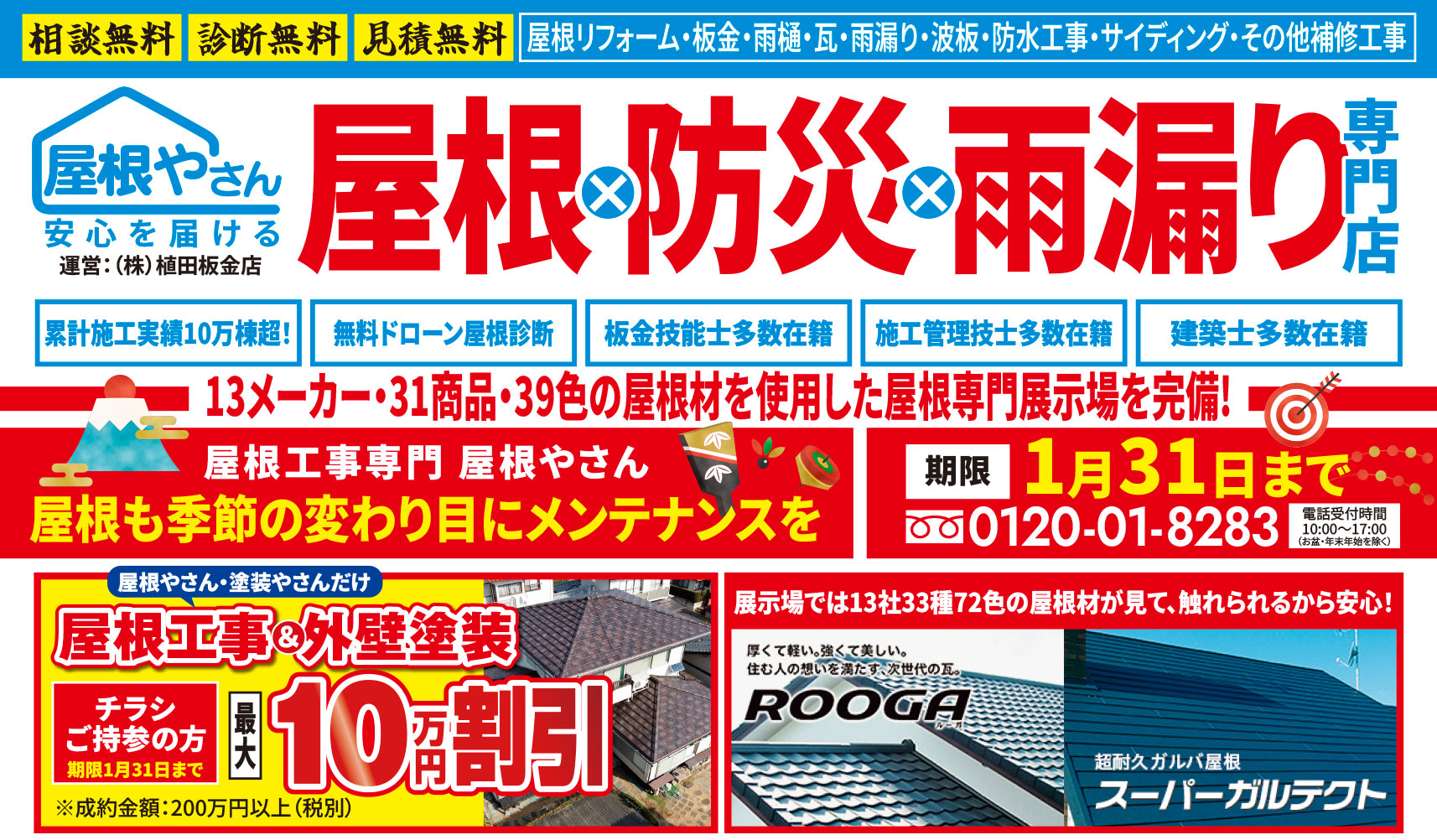 2026年1月31日までの期間限定です。岡山で屋根リフォームを検討中の方は、お早めにお問い合わせください!
