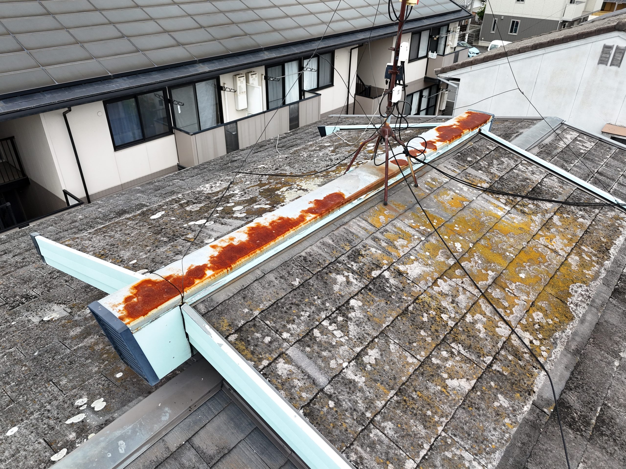紫外線や雨の影響で防水性能は低下し、塗膜はほぼ機能しておらず、屋根材自体が直接ダメージを受けている状態です。