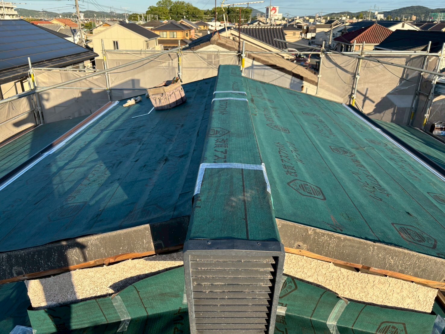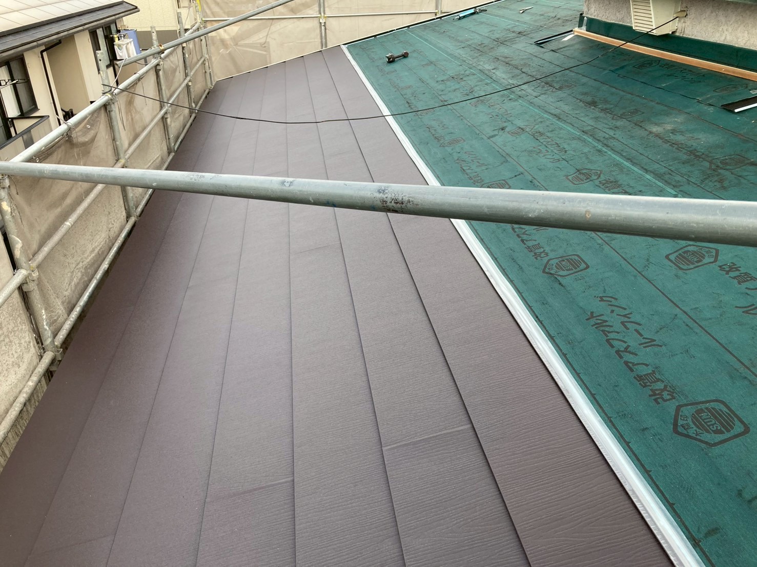 ルーフィング施工後、屋根の割付をし、本体を施工します。