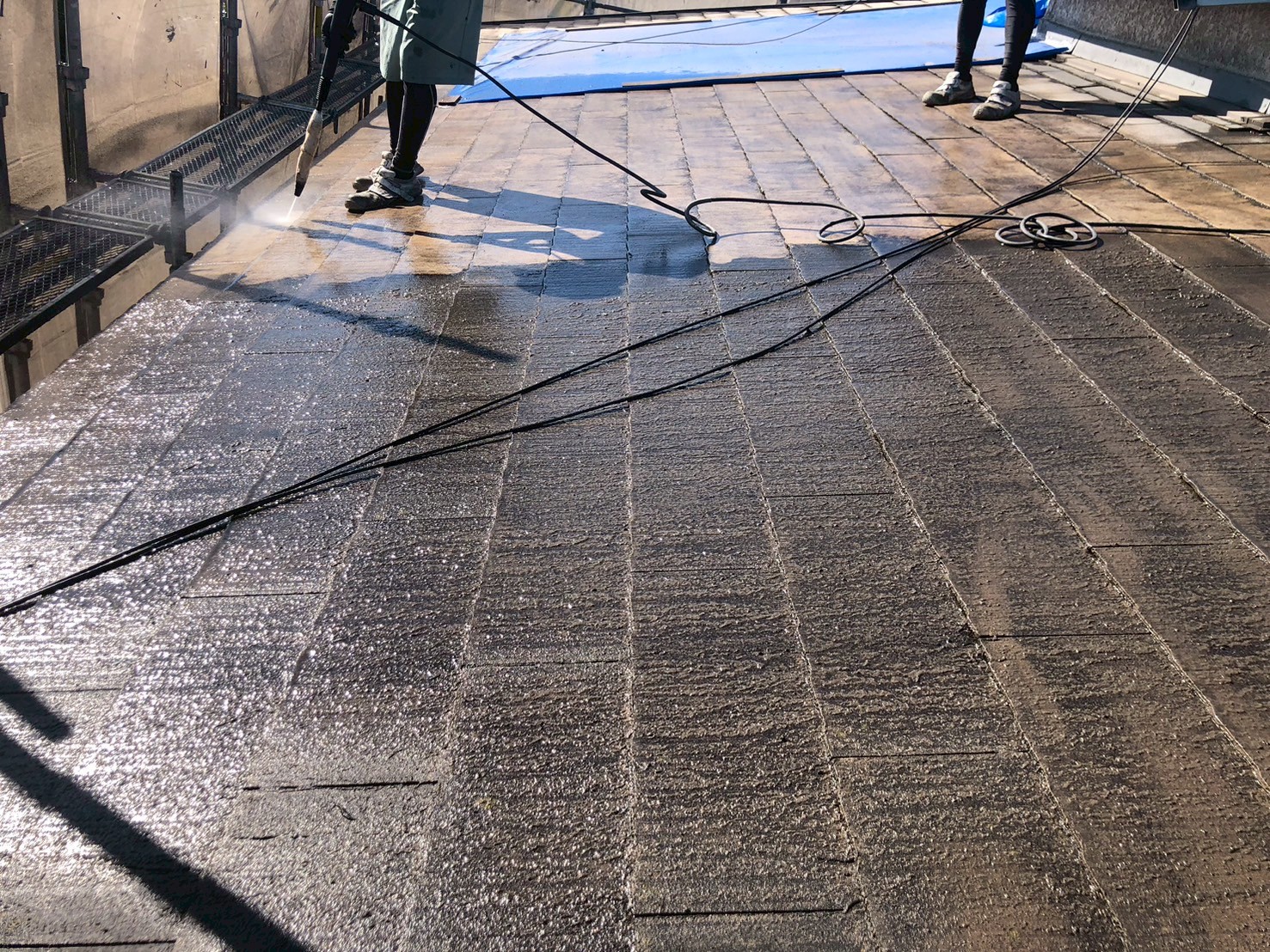 既存屋根材の表面を綺麗にしすることでルーフィングとの密着性を高めます。