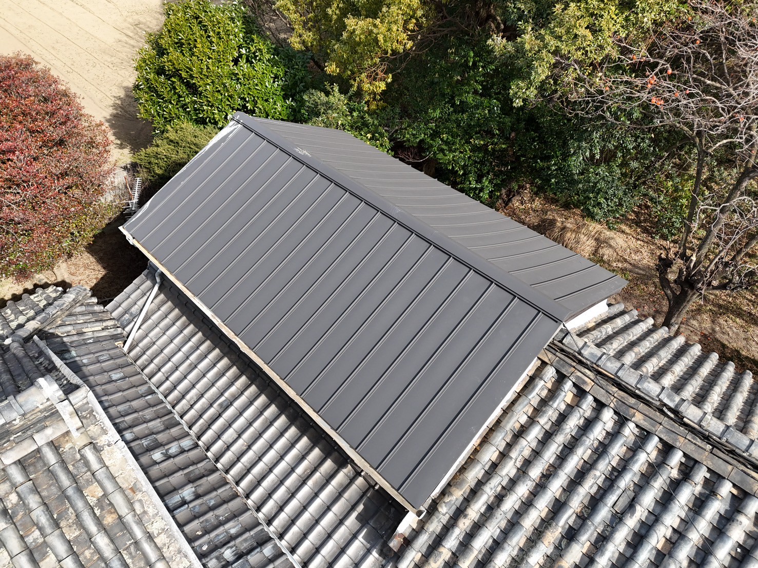 既存の屋根から立ハゼ葺きへの葺き替えを行い、軽量で耐久性・防水性に優れた安心の屋根へと生まれ変わりました!