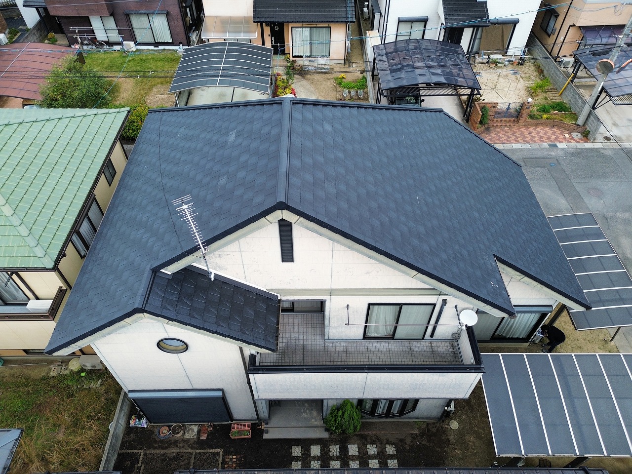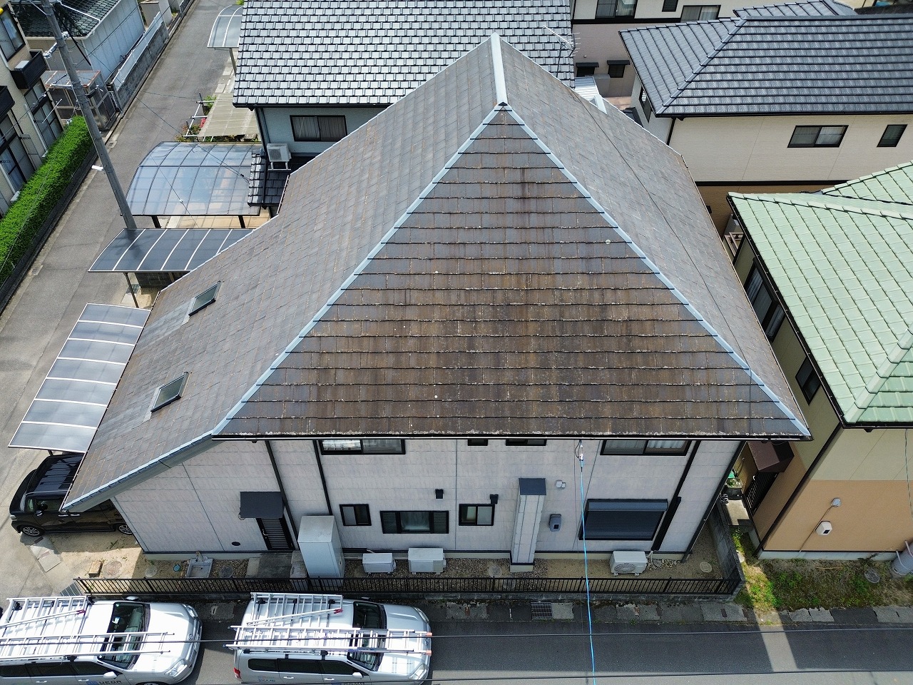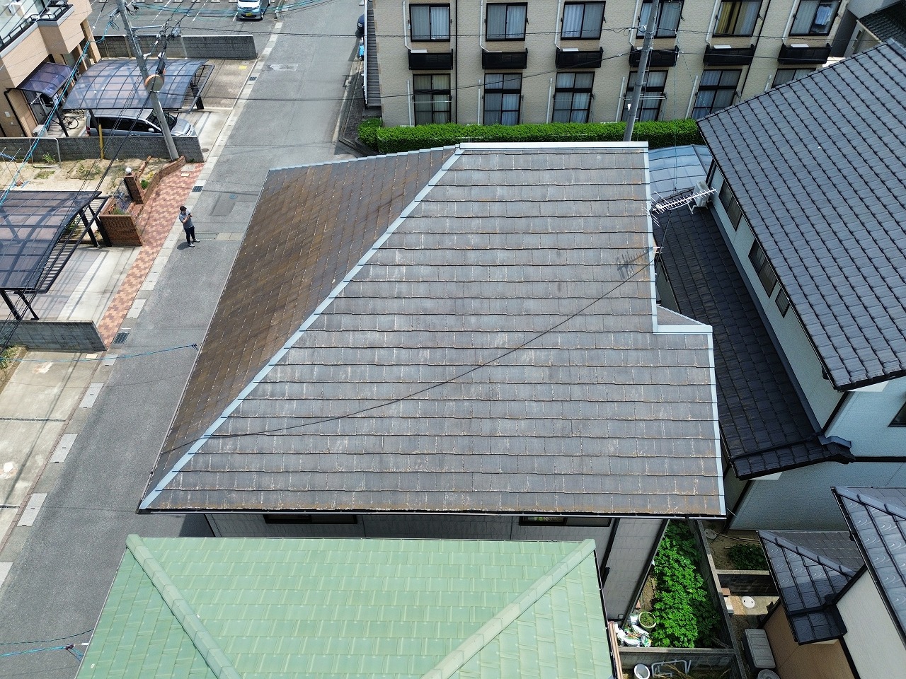 築年数の経過とともに屋根の色あせや劣化が目立ち始め今後のメンテナンス方法のご相談をいただき、現地調査のうえ葺き替 え工事をご提案させていただきました。