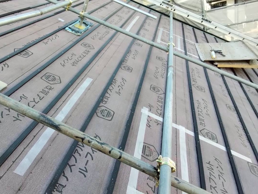 新しい防水シートを施工。 屋根は見えない部分の施工品質が重要です。