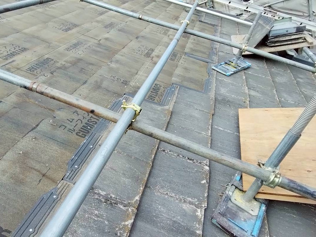 劣化したスレートを丁寧に撤去し、下地の状態を確認。