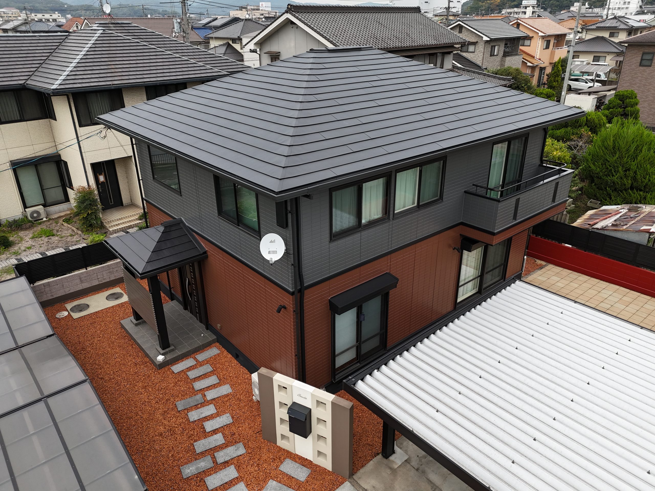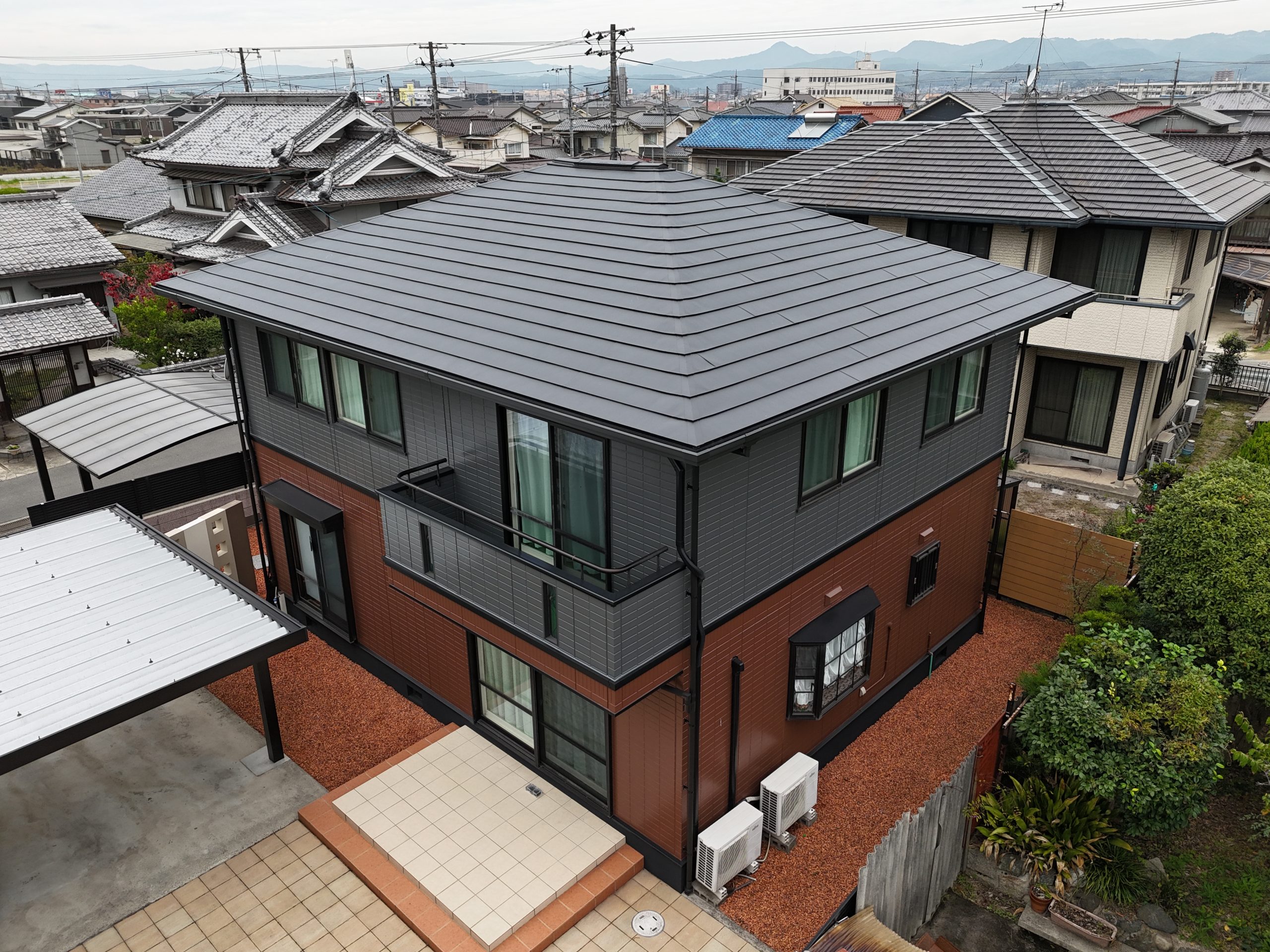 外壁:フッ素REVO 1階(リーガルブラウン)2階(スレートグレー) 付帯部:プレミアムNADシリコン