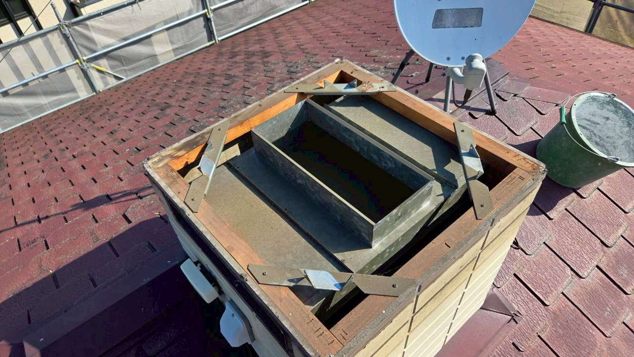 またこの写真のように換気煙突、またはトップライトがついている屋根はついていない屋根に比べて雨漏りのリスクが高くなるので、弊社では屋根工事のついでに撤去することをおすすめしています。
