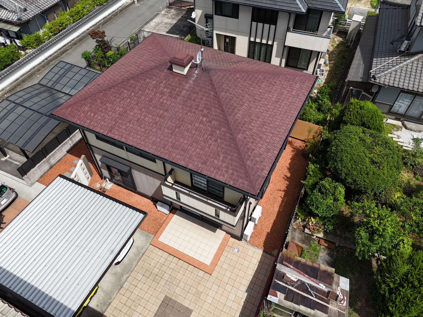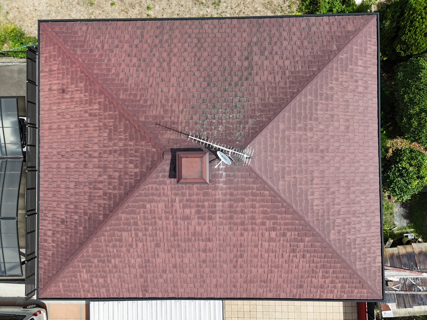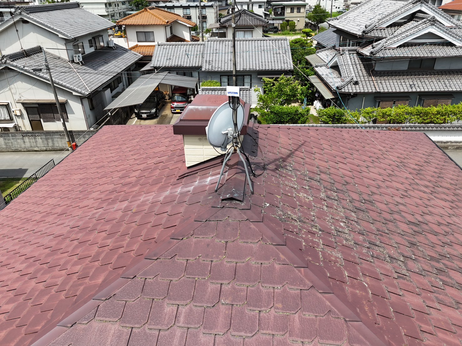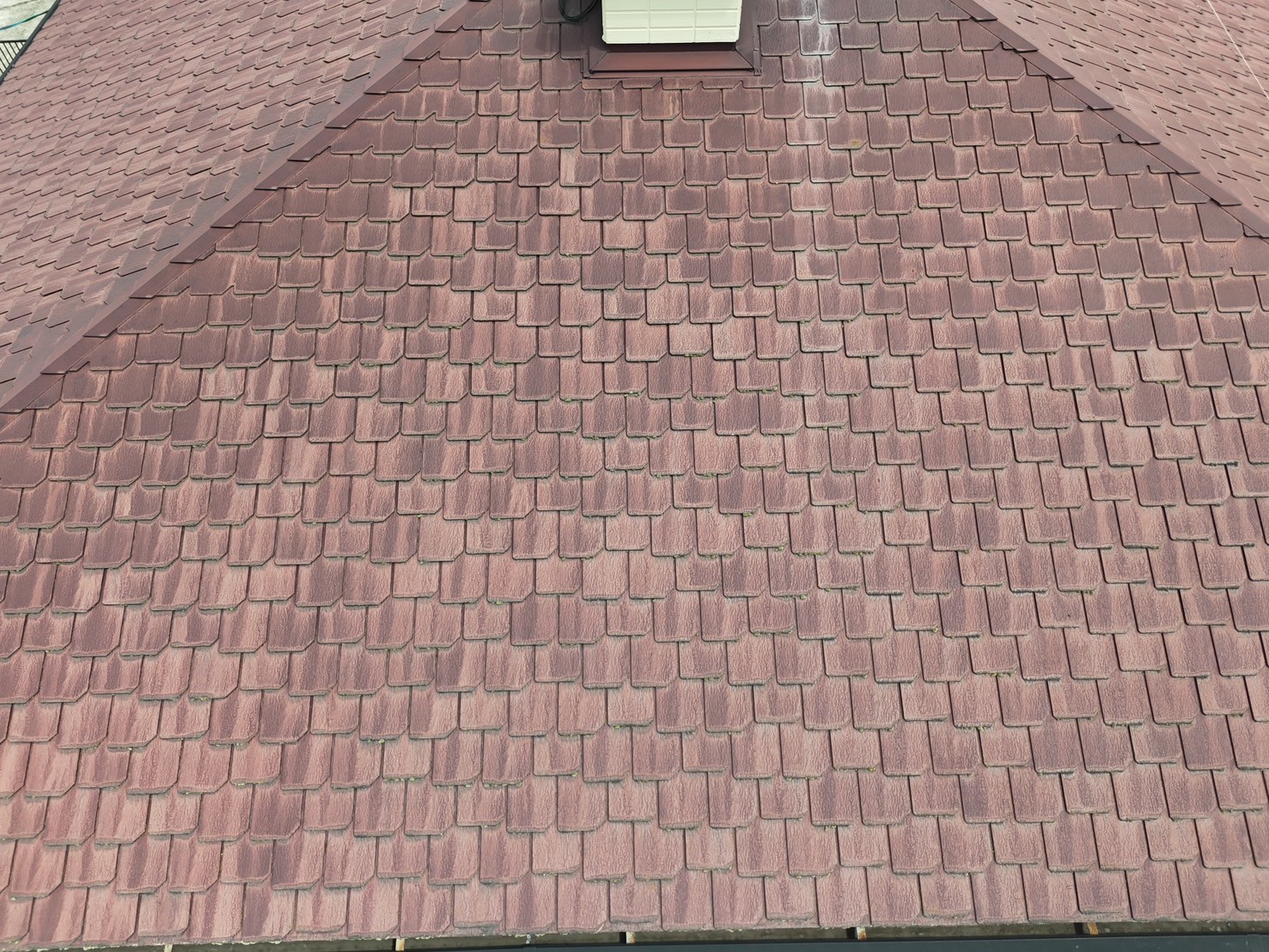 工事前の施主様の屋根の様子です。お住まいは築35年で屋根材としてはスレートが使用されていました。