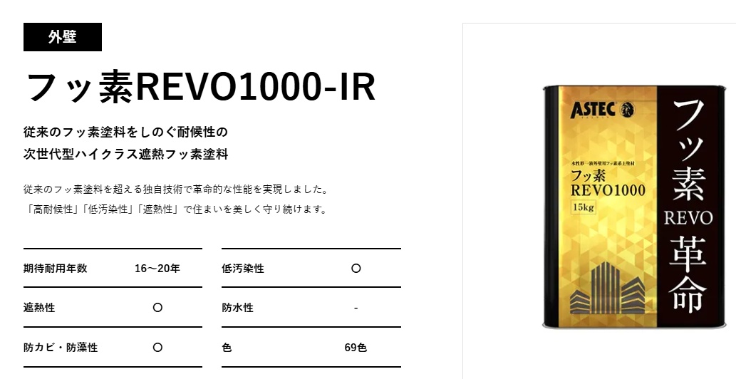 外壁塗装はアステックペイントのフッ素REVO1000-IRという塗料を使用しました!